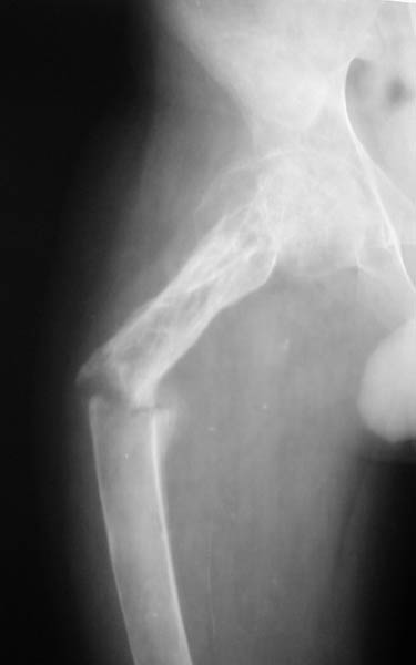 Мальчик, 14 летЖалобы на боли в правом бедре, резкое ограничение активных и пассивных движений в тазобедренном и коленном суставах справа, вынужденное положение правой ноги. Диагноз: Хондрома проксимального отдела правого бедра, состояние после внутриполостной резекции и аллопластики, закрытый патологический перелом проксимального отдела правого бедра со смещением В 2001 г. - хондрома проксимального отдела правого бедра. Операция - внутриполостная резекция, аллопластика. В течение 2 лет - 2 патологических перелома (СВ, гипс). 23.04. - закрытый патологический перелом проксимального отдела правого бедра.Патогистологическое исследование от 06.05.: остеобластома, диагноз в пользу агрессивного варианта.Тактика лечения?С уважением,А.В.ВладзимирскийДонецкий НИИ травматологии и ортопедииДонецк, Украина