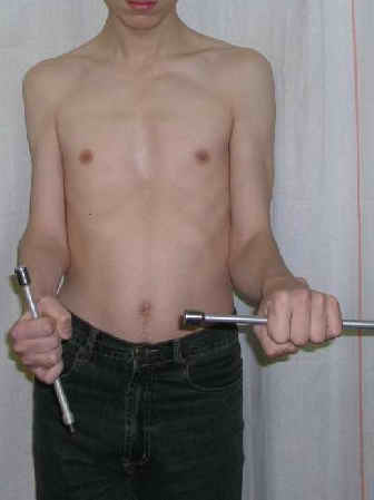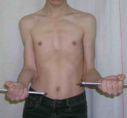 Судя по рентгенограмме, сформировался плечелоктевой артродез под углом около 90 градусов, поэтому тот объем движений, который выполняет пациент, обеспечивается за счет дефекта локтевой кости.