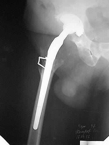 Наше общее мнение - проведение клиновидной остеотомии в зоне дополнительной точки опоры с ее иссечение и укорочением бедра, протезирование ножкой Вагнера.