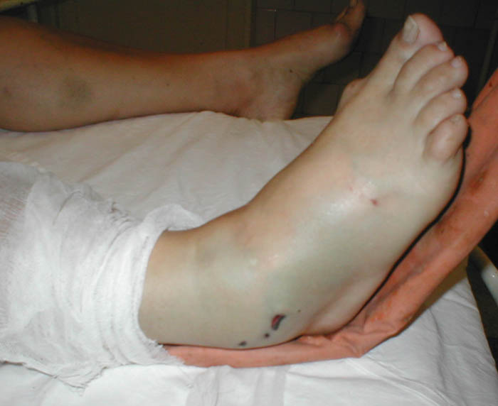 Диагноз: закрытый переломо-вывих таранной кости, двухлодыжечный перелом, подтаранный вывих стопы, асептические некрозы. Перелом был закрытый, но были некрозы из-за давления отломков (см.фото).