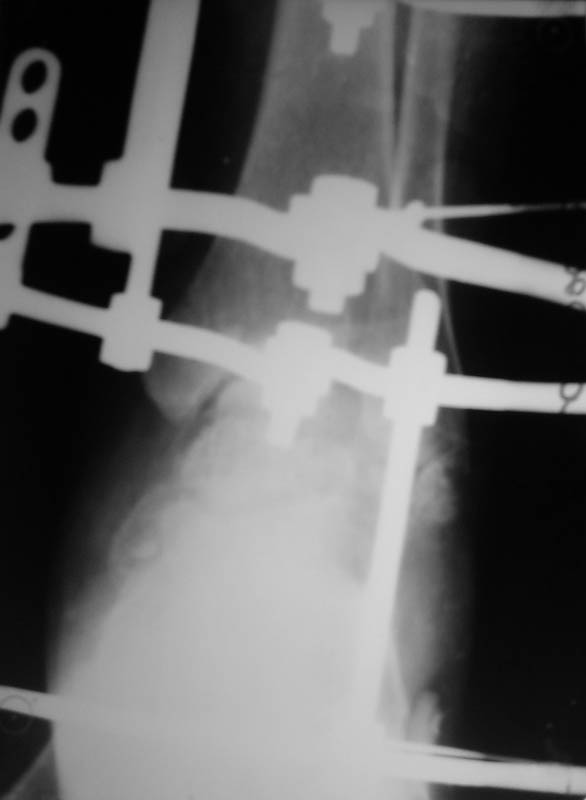 I thing in his setting just to do two ring Ilizarov fixator.