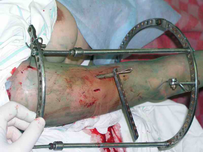 Да. У нас довольно скромный опыт такого остеосинтеза (по 2 случая - плечо и наружная лодыжка), дошли до использования самого простецкого троакара, через который мы сверлим кость и вводим 6 мм стержни, когда накладываем аппарат. Соответственно, в качестве забойника отлично работает любой стержень от аппарата Илизарова. Еще из наших туземных особенностей - страшная любовь к спицевым дистракторам, поэтому делали в нем. Результат у этой дамы неизвестен, т.к. она из области и уехала рожать сразу после остеосинтеза, сейчас прошло больше 5 месяцев...