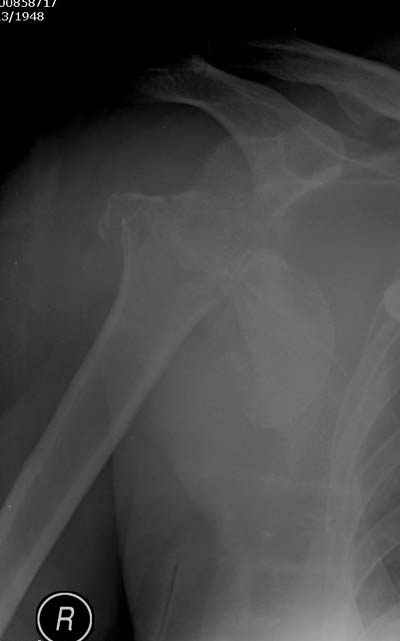 Спасибо за презентацию вашего случая. Две недели назад у меня был больной с переломовывихом плеча , правда, 4 недельной давности :-((( больной из отдаленной деревни). Закрыто сделать ничего не удалось естественно, при попытке открытого вправления головки она *рассыпалась* на фрагменты и суставной хрящ представлял из себя egg shell, поэтому пришлось ограничиться удалением фрагментов головки и физиотерапией. При таких ситуациях артропластика показана, но к сожалению нет такой возможности в местном госпитале - только в частном :-((