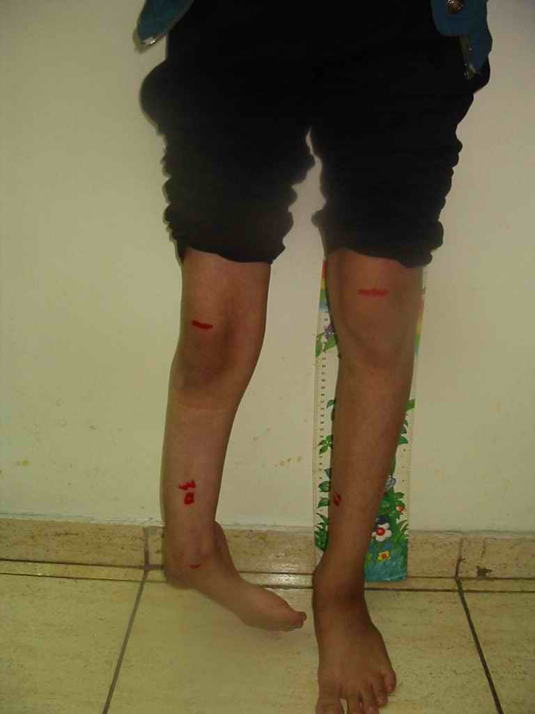 Поднадкостничную остеотомию большеберцовой кости в средней трети с формированием синостоза с малоберцовой ( активно растущей) костью и второй уровень в области дистального тиб/фиб синдесмоза- достигается баланс роста( средне-медиальный и латеральный отделы) в области измененного голеностопного сустава. Коррекция эквино-варусной деформации стопы в аппарате после чрезкожной сегментарной тенотомии ахилова сухожилия. Дело