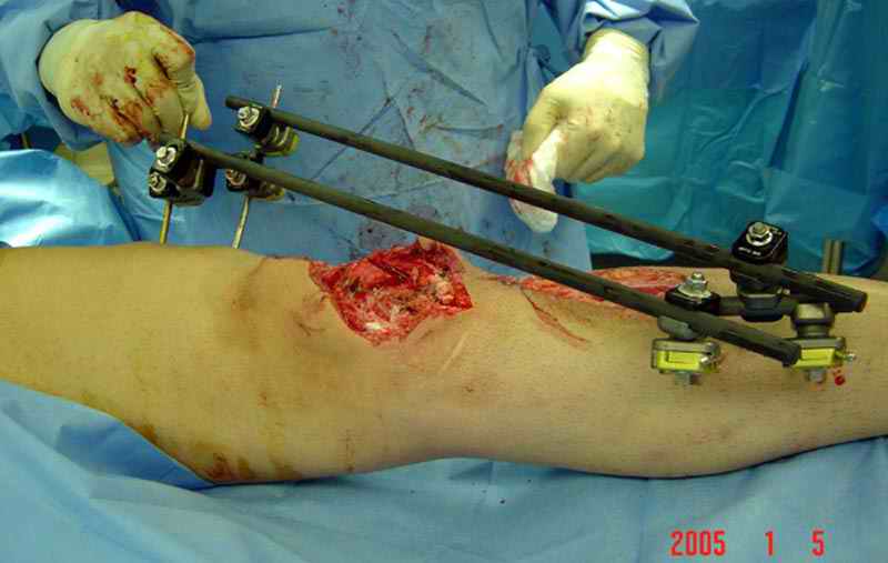 При открытых переломах Type1-2, придерживаемся следующей тактики: дебрайдмент, фиксация перелома и рана прикрывается мокрой повязкой или ваккуум, т.е. не закрываем рану первично!, через два или три дня, в зависимости от состояния раны пройзводим закрытие. При некрозе кожи продолжается иссечение с повторными дебрайдмент.