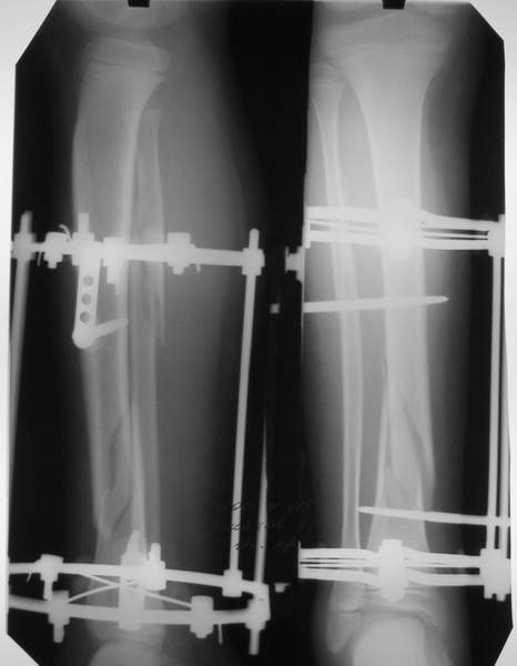 МТ мы используем, конечно, не только на голени. В прилагаемом примере у парня при поступлении была наружная ротация 40 гр. и "полумертвый" коленный сустав. Можно был бы, конечно, до конца использовать полную компоновку. Но для того он и есть метод выбора.
