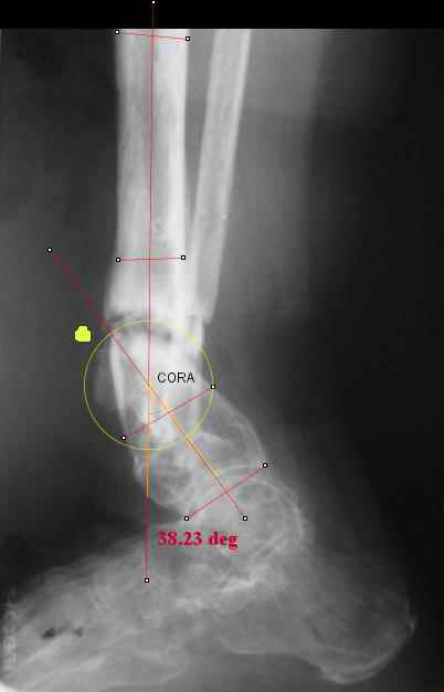 angle of deformity and the perpendicular at the middle of the line connecting the departure and arrival place of one point of the bone structure you are correcting (see sketch.