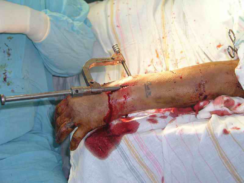 Yes, the radius. The set includes cannulated reamers 4 and 5 mm. Though finally our custom-made 5 mm hybrid of reamer and awl was used.