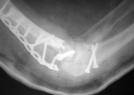 Трудно не согласиться с коллегами - только открыто и только пластинами - одной или двумя не суть важно, но задним доступом с временной резекцией олекранона! Снимки отсылать не буду итак много примеров
