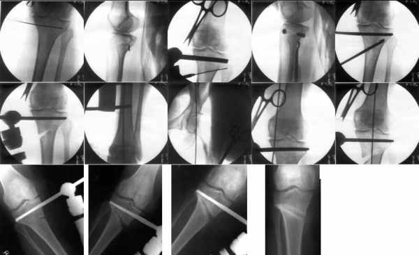 When I use an orthofix fixator, the osteotomy is oblique, starting below the tuberosity and ending 1 cm away from the lateral cortex at the level of the head of the fibula. No fibular osteotomy is needed there. The deformity is gradually corrected over 2 or three weeks.