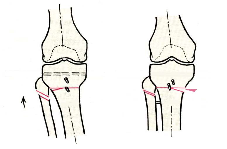 Хотя любого больного она не в меньшей степени интересовала. При всех видах остеотомий обязательным требованием являлась восстановление баланса пассивных и динамических сил путем восстановления оси конечности, стабильности связочного аппарата и контроля над мышечной активностью при осевой нагрузке. Как правило, учитывалась сохранность гиалинового хряща на компенсирующем нагрузку мыщелке бедра или большеберцовой кости. Предоперационное планирование осуществляли с поднагрузочных рентгенограмм обоих конечностей.