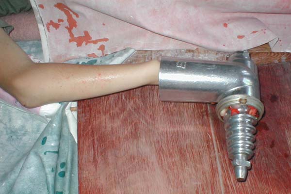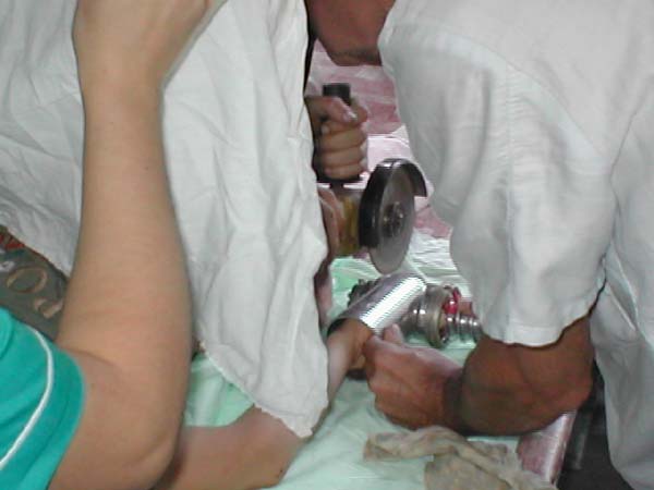 <Болгарку> следует включить в перечень инструментов ургентных травматологических отделений!Ребенок 10 лет, кисть попала в мясорубку. После <освобождения> - < | >