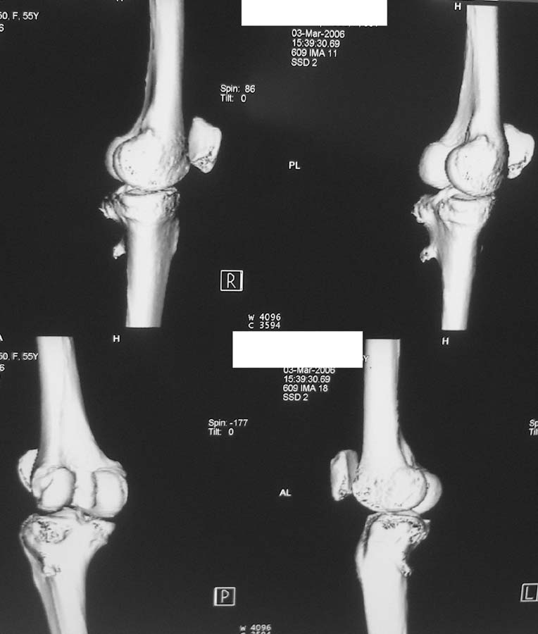 Суставная щель на вид очень даже приличная. Мне кажется у больной есть варусная деформация колена, и возмможно с этим связано дегенаративное поражение медиального мениска и вся клиническая картина. Если это так, то эндопртезирование это слишком! Может что полегче: артроскопия и медиальная плюс-остеотомия.