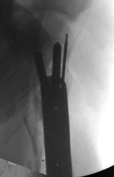 Из всех типов фиксации взяли малоинвазивную технику мостовидной пластиной, использовали Locking проксимальную Synthes пластину.