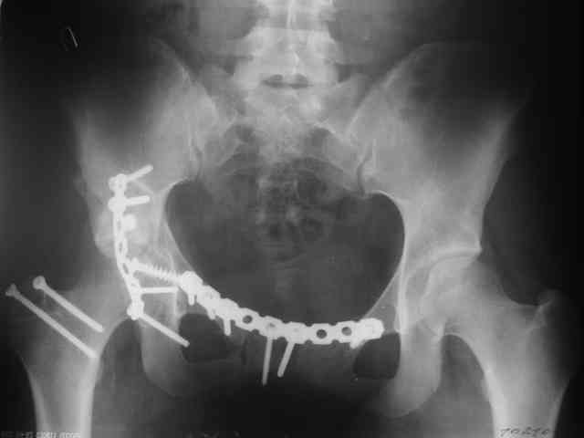 пришлось открывать ся над лобком и ретроградно двумя винтами фиксировать обе ветви лобковой кости справа и слева.
