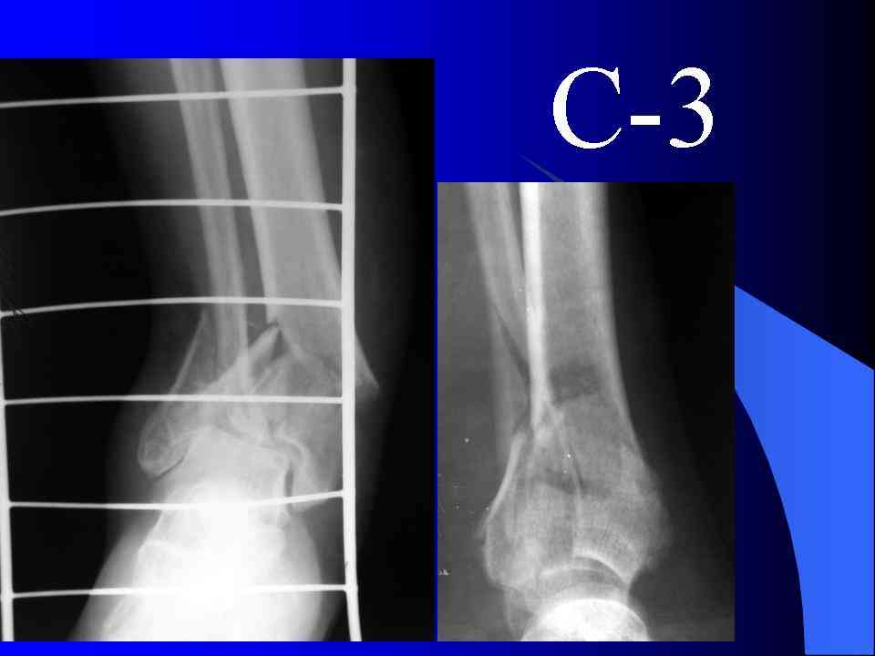 На рентгенограммах типичный перелом пилона по типу С-3. есть опыт до 100 открытых опреаций у нас в клинике. 20 примерно в год. Принцип один -все внутрисуставные переломы нуждаются в открытой репозиции и внутренней стабильной фиксации. При поступлении КТ не надо, так как получается только нагромождение костей. Истинной картины нет. Главное восстановить длину малоберцовой кости - это ключ к успеху. При поступлении меньше всего надо думать о сосудистых расстройствах, т.к. сама операция и репозиция даже сначала частичная даёт улучшение сосудитых нарушений. Причём очень быстро. Операция в 2этапа. При поступлении доступ позади наружной лодыжки, причём обязательно. После этого репозиция малоберцовой кости и фиксация пластиной 1/3 трубки под винт 3,5. Дренаж и любой аппарат наружной фиксации. Затем после спадения отёка на 5-7-10 день аппрат снимается и дугообразный разрез спереди от медиальной лодыжки 10-12 см. Главной чтобы расстояние между 1 и вторым разрезом было не меньше 7-8 см. Тогда не будет некрозов лоскутов. Таранная кость используется как матрица на неё укладываются отломки и фиксируются пицами. Ренг-контроль. Отломки лежат все отдельно, но ничего не высыпется. При переломах С-3 всегда нужна костная пластика (из крыла). Фиксация пластиной лист клевера простой или LCP. Гипс не нужен. Дренаж до 48 часов. Операция длится 3-4 часа обязательно без жгута. Посылаю примерно такой же случай.