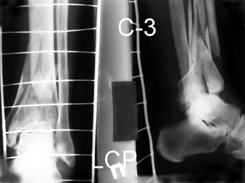 Кстати, при переломах переднего края по классификации АО В-3 при переломах пилона пластина укладывается по передней поверхности. Она достаточно тонкая и эластичная, не надо этого бояться. Посылаю три снимка.
