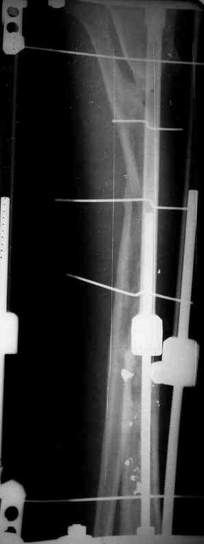 Признаюсь честно, не совсем уверен в прочности консолидации на стыке косточек. Кроме того, укорочение в районе 6 см. Сейчас реабилитация - ходит опираясь на ногу с одним костылем.