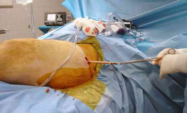После трех дней ваккуумного дренажа, из латерального доступа удаление остатков старых антибиотичеких бус, закрытие медиальной раны с наложением ваккуумирования латерально. В следующий раз, через пару дней надеемся закрыть рану.
