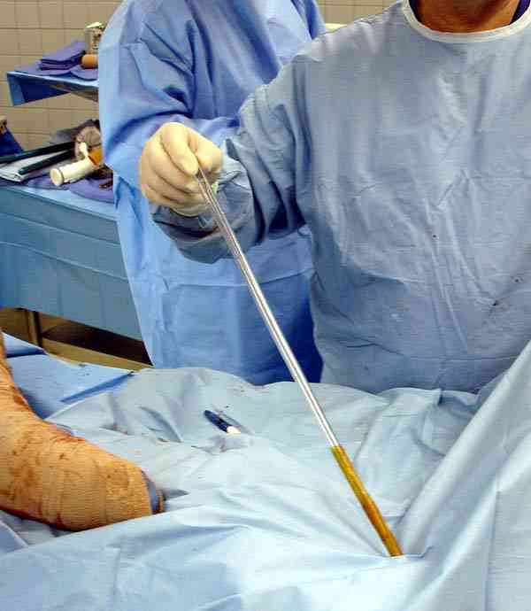 Канал до вставления гвоздя рассверливается на пару мм, а взятая большего диаметра внутренная арматура обычно удерживает конечность, даже в некоторых случаях, при небольшом дефекте, и вес больного.