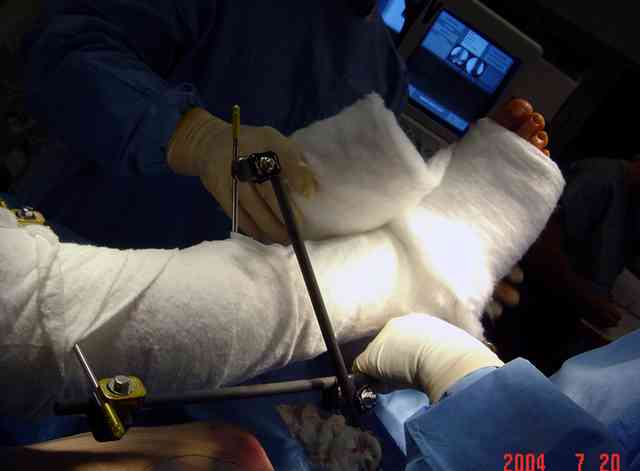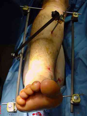 Наружным фиксатором обеспечивается длина конечности, предупреждается вторичное сокращение мягких ткани, что является немаловажным фактором для заживления послеоперационных ран. Без фиксатора сокращенные мягкие ткани легко травмируется во время манипуляций, трудно будет провести репозицию, ухудшается местное кровообращение и сохраняется посттравматический отек.