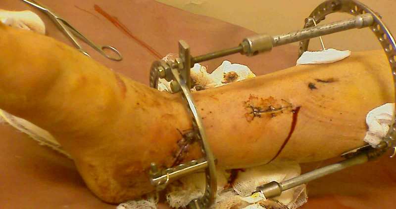 На 3 день после операции развился значительный отек стопы,гиперемия краев раны в области наружной лодыжки, и похоже формируется некроз краев раны в области внутренней ложыдки.