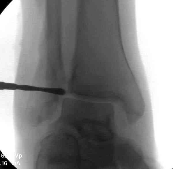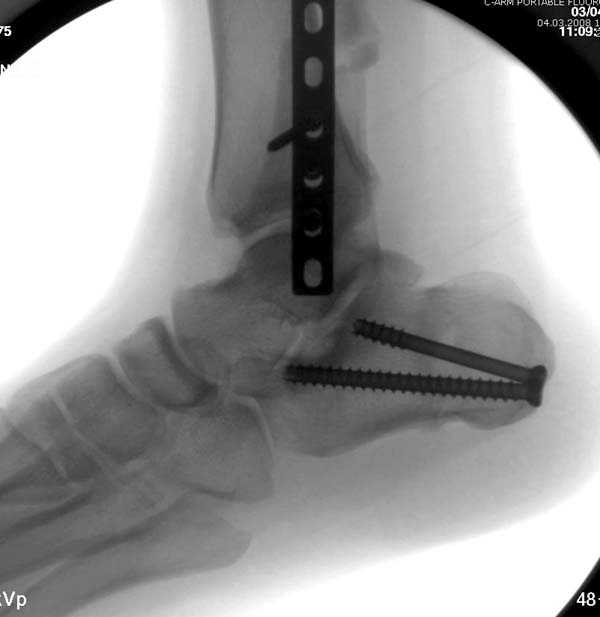 Здесь представлено решение похожей проблемы. Больной в течение года лечился консервативными мерами, и боли в голеностопе были основным показанием к операции.