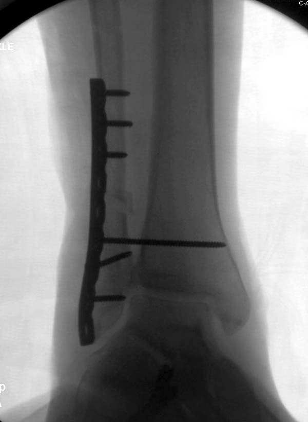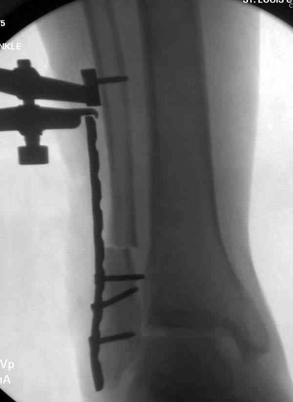 > Через 1,5 вполне возможно разобщить, репонировать и фиксировать длинный косой перелом наружной лодыжки. Вероятно, одновременно придется делать медиальный доступ для мобилизации внутренней лодыжки.
