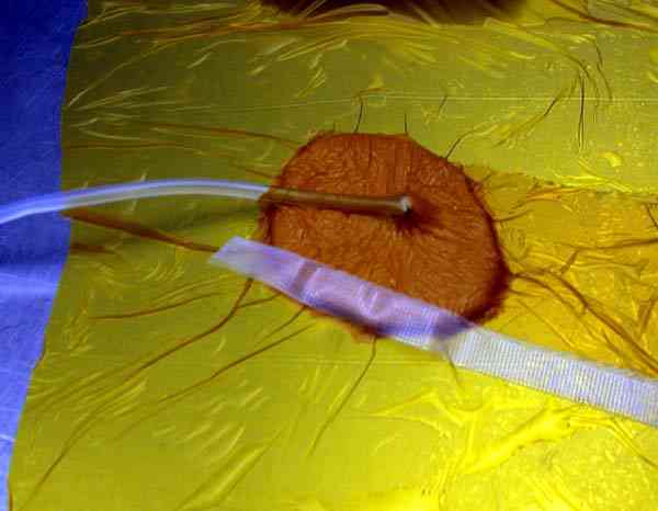 стерильной пленкой Iobane, присоеденена к ней трубка из внутривенной системы и обычный отсос от