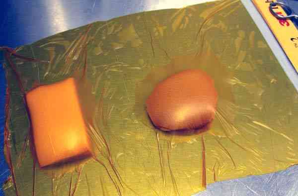 снятием лишнего цемента шаблоном. Такие шаблоны были в старом интрамедуллярном наборе, различные по диаметру отверстия на металлической пластине. Протез с цементом проводится через отверстие в шаблоне для точного совпадения с размером проксимального римера. Таким образом приготовленный феморальный компонент будет