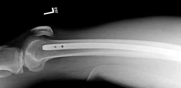 Множественные работы коллег доказывают, что фиксация без рассверливания дает большинство случаев несращений. Малый диаметр гвоздя не дает необходимой стабильности и может дать осложнения. Замена гвоздя на больший по диаметру решит проблему потенциальных ложных суставов, но такие случаи должны планироваться заранее, потому что заблаговременное предупреждение о возможной ре-операции позволит избежать последующих претензий со стороны больных.