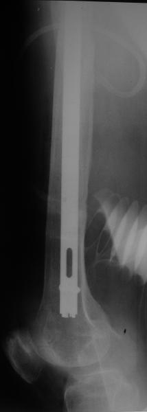 * materials of the stem and nail (I think Iron steel in both); if they should be different (and many hip prosthesis are made by an alloy that is not the same of the nails) we could see electrolytic phenomena
