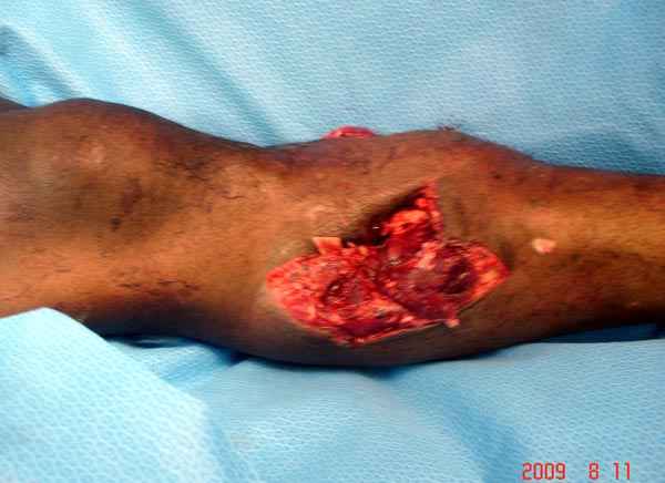 Потом было было желание узнать насчет контаминации бактериями, поэтому после каждого дебридмента брали пробу на чувствительность из раны.