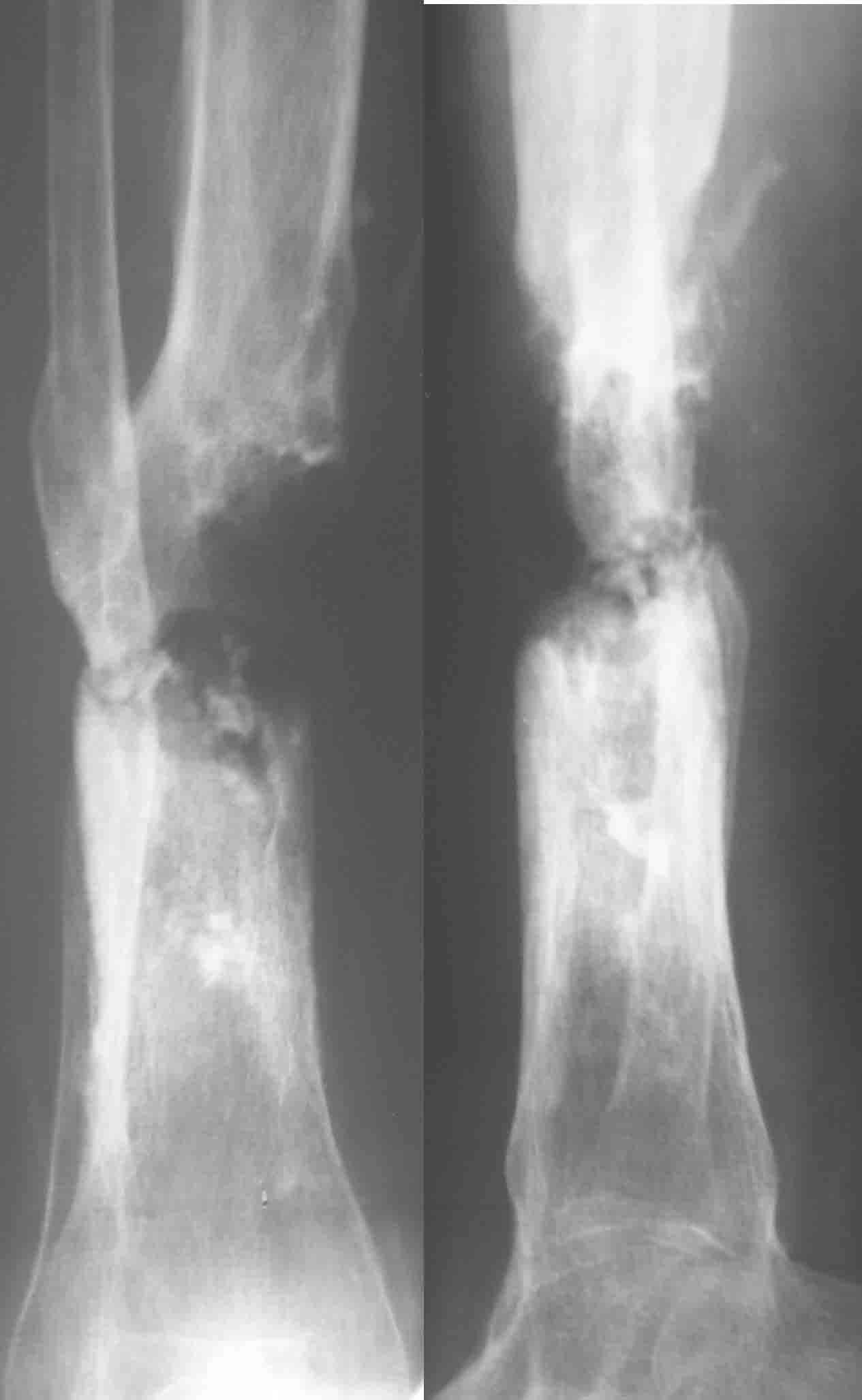 Кратко: мужчина за 60 лет получил травму 28 лет назад (переехало автобусом). Оперировался десятки раз, в итоге с очередным патологическим переломом, хронической язвой и гипсовой лонгетой попал ко мне... Объективно - остеомиелит, инфицированный ложный сустав (или как его назвать), флегмона по наружной поверхности
