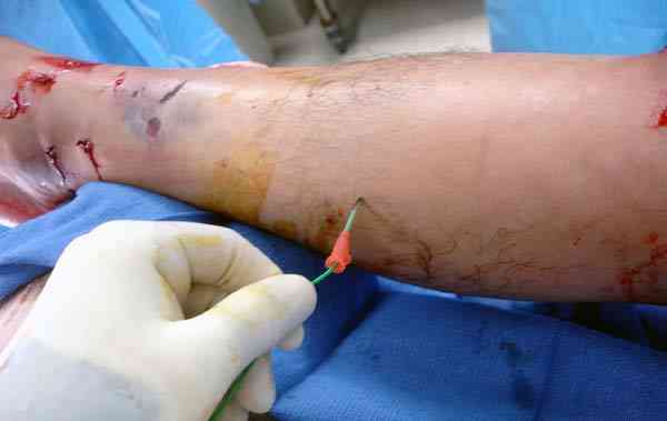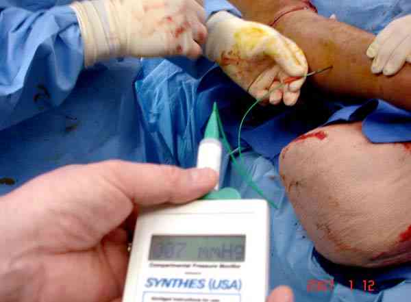 Независимо от уровня повреждения, давление проверяется во всех компартментах. В голени обычно в средней трети, и их в голени 4, на наружной стороне два: передний и наружный, на внутренней стороне: задняя и задняя глубокая.