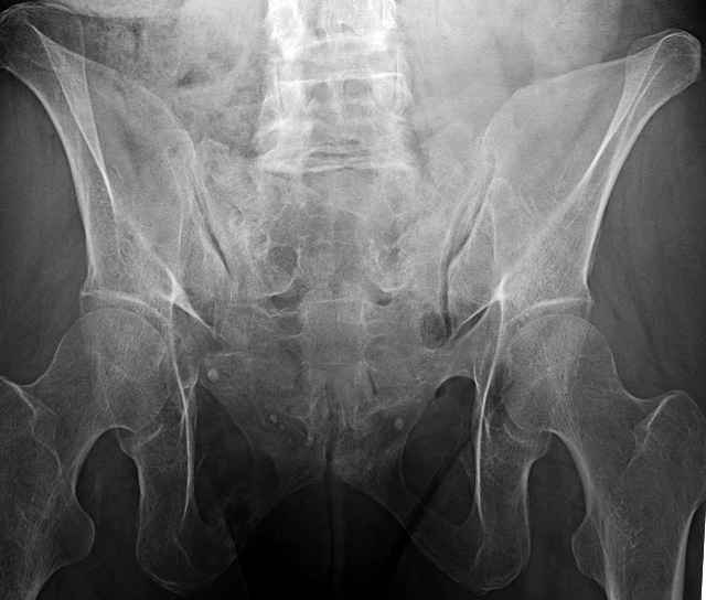 hello everyone, attached are images of a 59 yo female, admitted today after motor vehicle collision. Pt states her pelvis has been very painful ever since she fell on her buttocks from ground level a little over a year ago. medical history significant for scleroderma, raynauds syndrome, and COPD. no past surgeries.